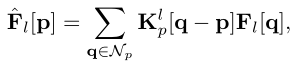 对于损坏图像 _I_ ,预测核模型可以表示为,,具体来说,对于位置为 _p_ 的像素点,其工作原理为: