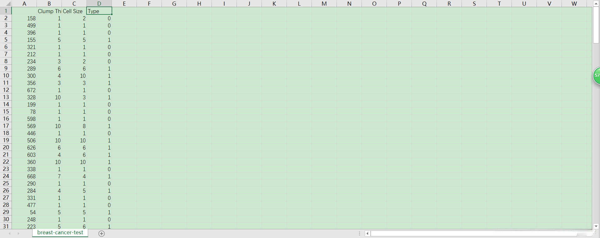 #注意,这里你应该找到你的breast-cancer-test.csv文件的完整路径