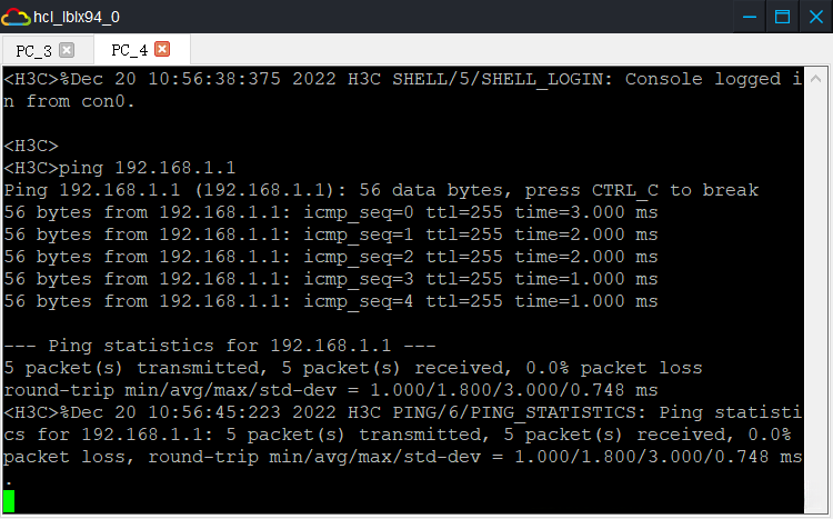 效果测试:PC3 和 PC4 都能够 Ping 通 PC5