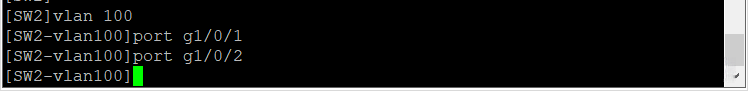 步骤 1:在 SW2 上创建 Vlan100,并把 G1/0/1 和 G1/0/2 口以 Access 类型加入 Vlan100