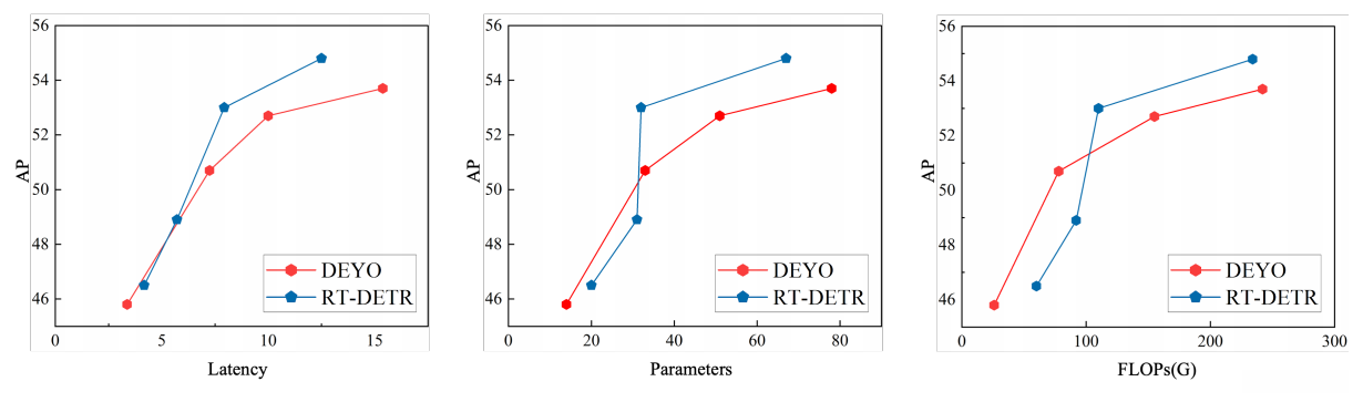 图6.对DEYO和RT-DETR的综合比较表明,尽管在更大范围内存在特定差距,但DEYO不依赖额外的训练数据,并且大幅降低了训练成本。我们相信,DEYO在定制数据集方面具有独特的优势。