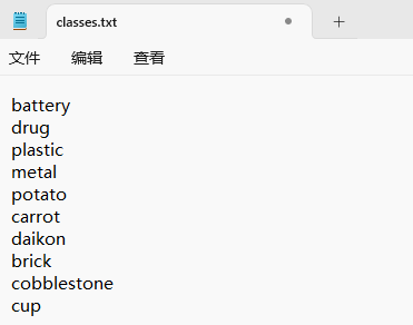 存储标签类别的文件名为classes.txt(固定不变),用于存储创建的标签类别