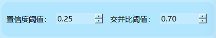 (2)交并比阈值:当前设置为0.70,表示系统只会认为交并比(IoU)超过70%的检测框为有效结果。交并比是检测框与真实框重叠区域的比值,用于衡量两个框的相似程度,值越高表明重叠程度越高。
