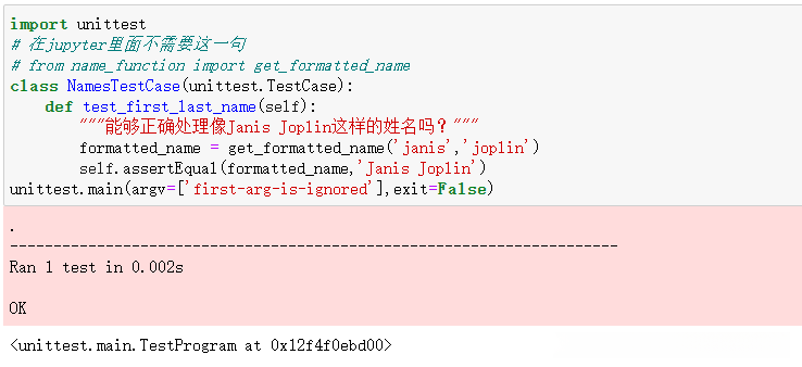 代码行unittest.main(argv=['first-arg-is-ignored'],exit=False)让python运行这个文件中的测试。