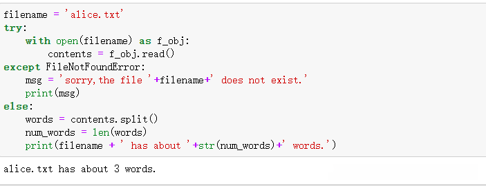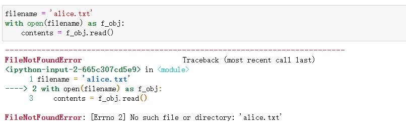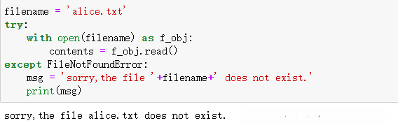 这个错误是函数open()导致的,因此要处理这个错误,必须将try语句放在包含open()的代码行之前: