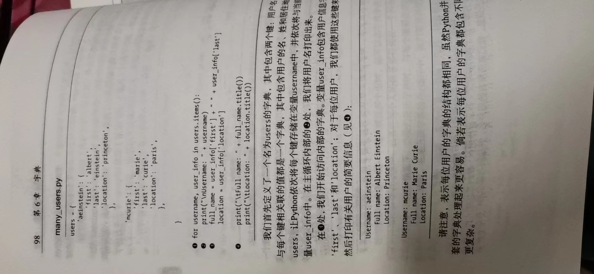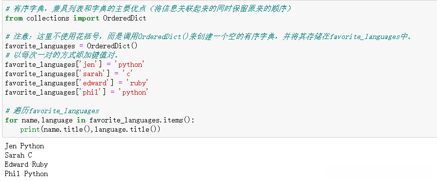 注意,键-值对的排列顺序与添加顺序不同,python不关心键-值对的添加顺序,只关 心键和值之间的关联关系。
