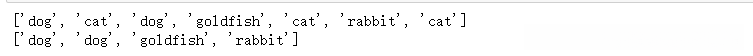 > 1. pets = ['dog','cat','dog','goldfish','cat','rabbit','cat']