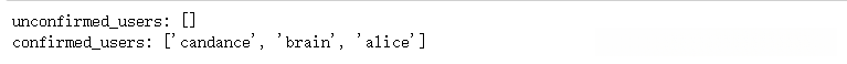 > 1. unconfirmed_users = ['alice','brain','candance']