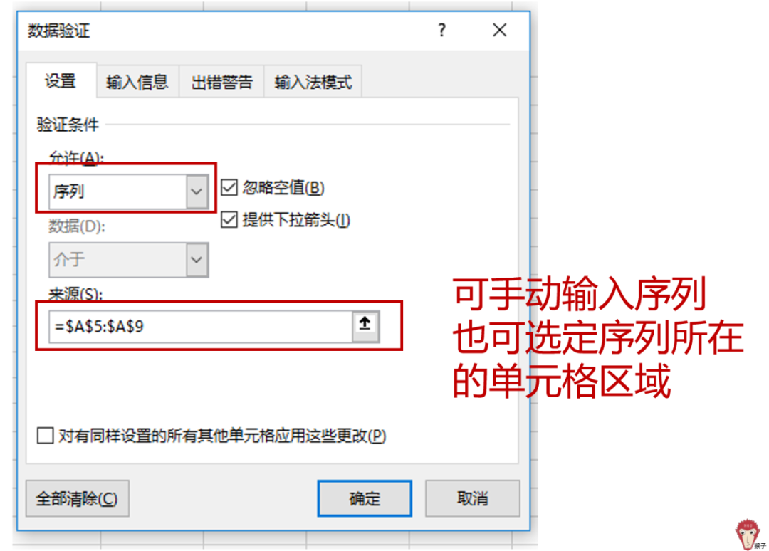 也可以像本案例操作中一样类似地,在本案例的操作中由于在Excel单元格中已正确填入了相应的序列值因此,在选择相关区域时,请直接选择包含这些序列值的单元格区域。