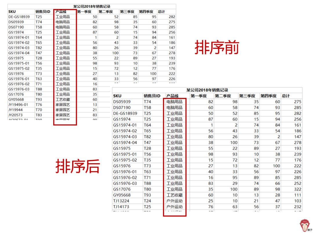 问题2:按“产品线”进行升序排列