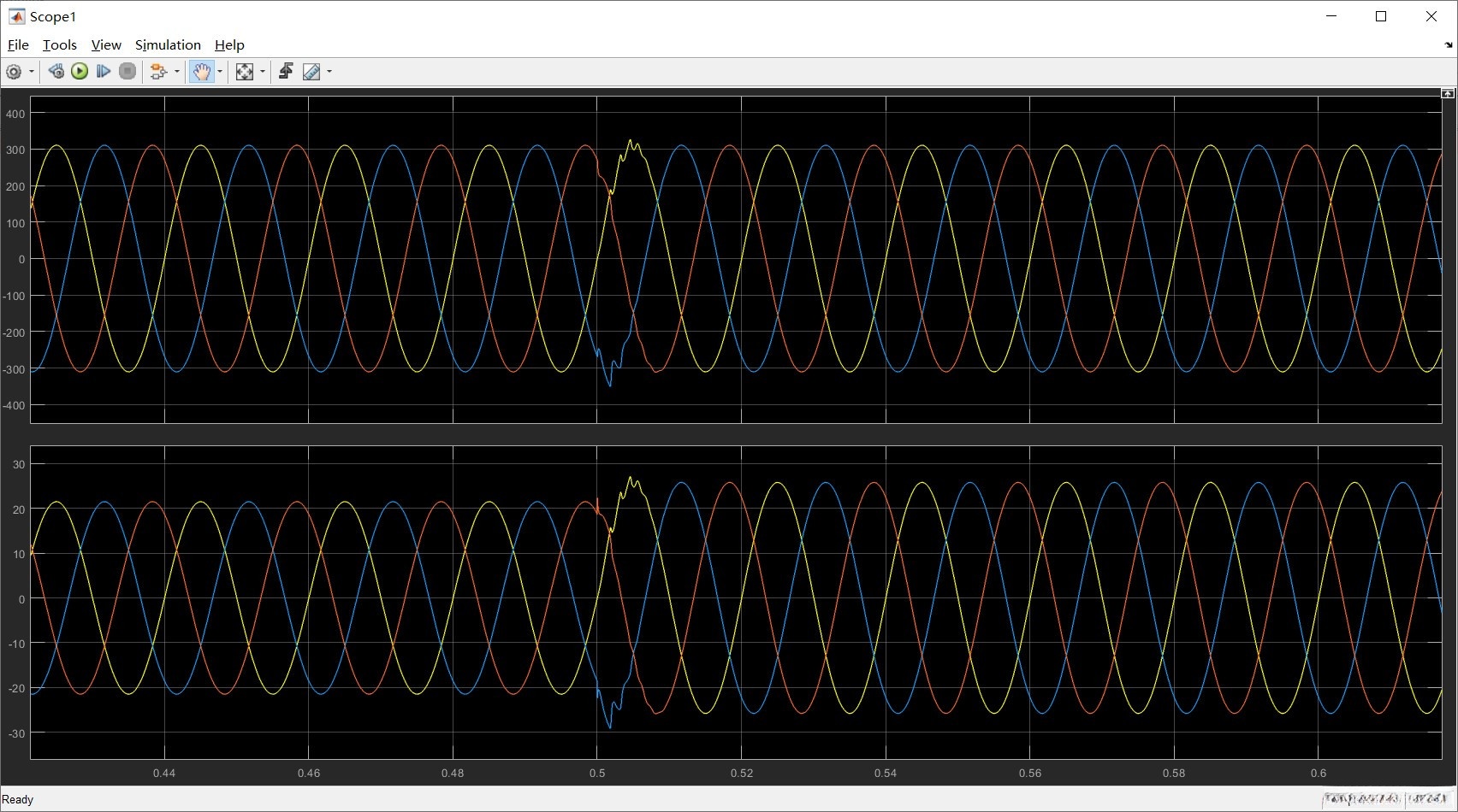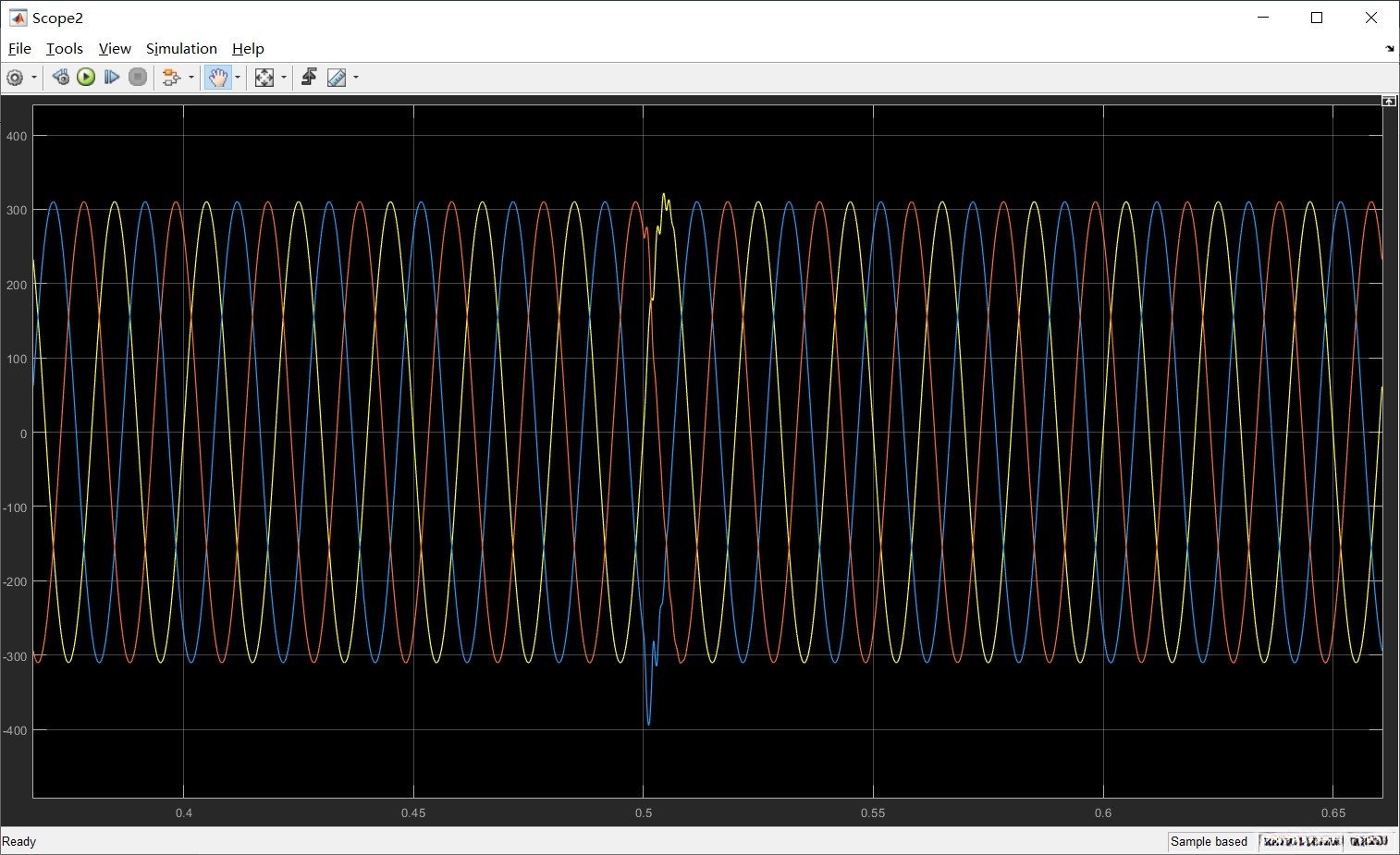 设置直流恒压源为800V,逆变输出相电压有效值为220V的交流电,负荷起初为10KW,在0.5S时负荷增加至12KW,仿真结果如下图所示: