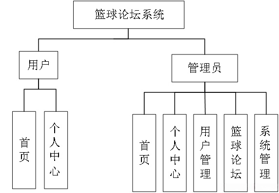 考虑到实际生活中在篮球论坛方面的需要以及对该系统认真的分析,将系统权限按管理员和用户这两类涉及用户划分。