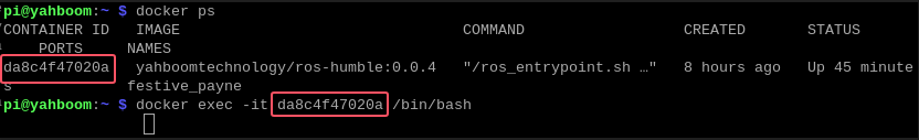 再次启动一个新的终端,并连接到同一台docker容器。对于da8c4f47020a标识符,请将其配置为该终端实际显示的ID号码。