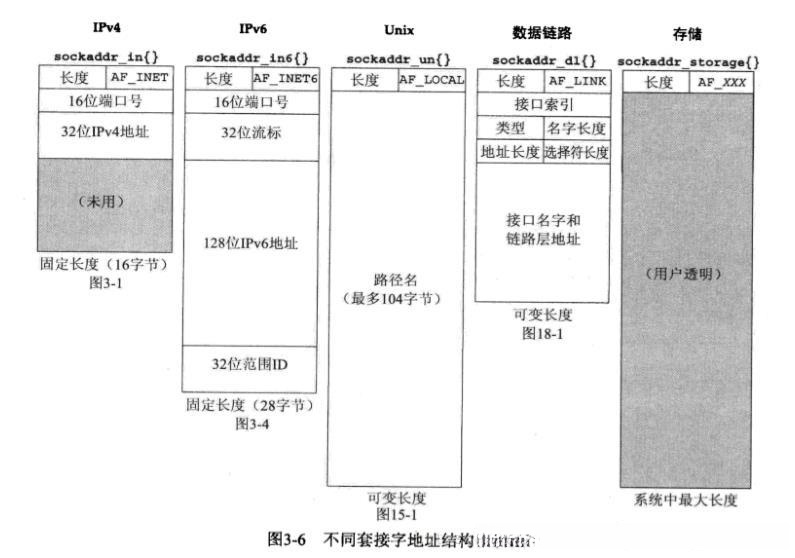 POIX规范只需要这个结构中的3个字段:sin_family、sin_add、sin_port。对于符合POIX的实现来说,定义额外的结构字段是可以接收的,这对于网际套接字地址结构来说也是正常的。几乎所有的实现都增加了sin_zero字段,所以所有的套接字地址结构大小都至少是16字节。