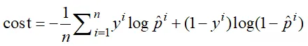cost = - tf.reduce_mean(y_ * tf.log(tf.clip_by_value(y_hat, 1e-10, 1.0)) + (1 - y_) * tf.log(tf.clip_by_value((1 - y_hat), 1e-10, 1.0)))