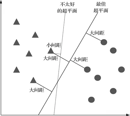 该算法基于特征值构建了一个n维的空间,并将数据点投影至该空间中;随后通过寻找一个超平面来实现对这一空间中数据的分类功能;如图所示为具体实施效果示意图