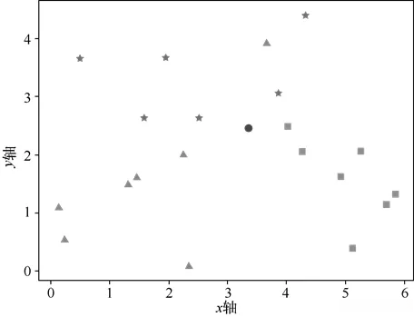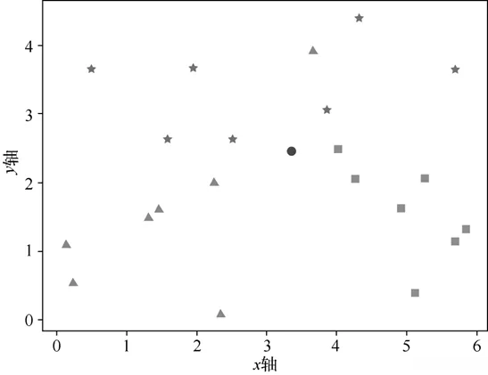 将数据划分为三类;其取值范围设定为0至8之间;其取值范围设定为0至5之间。允许用户自定义或通过生成随机数来创建数据;建立两个列表变量;第一个列表命名为raw_data_X用于存储坐标数值;第二个列表命名为raw_data_Y用于存储对应的标签信息。