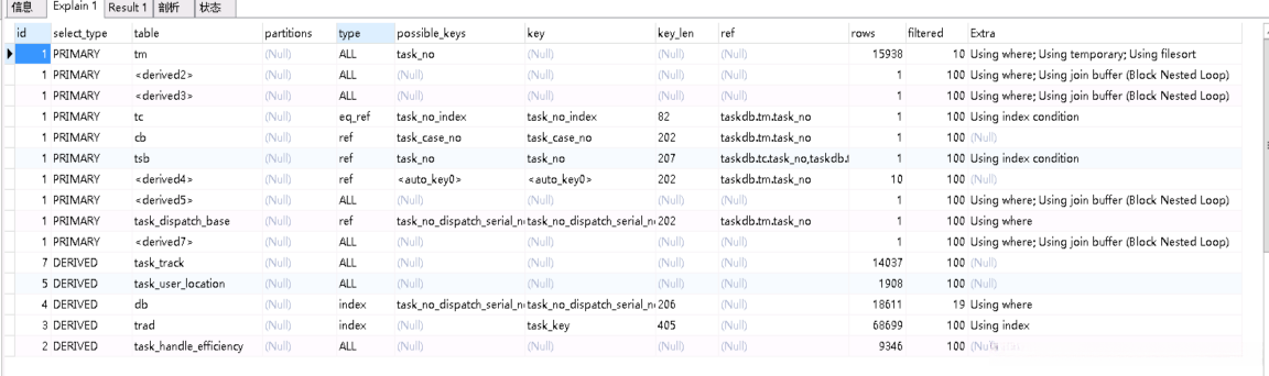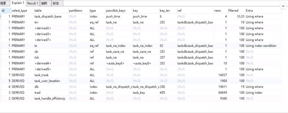 explain 解释如下,可以看到因为orderby 导致的查询过慢.