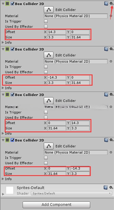 我们需要在平面边缘设置四个碰撞器组装成一个框架来覆盖整个平面。具体操作如下:例如,在进行操作时,请注意以下小技巧:当你需要添加组件时,请先选择一个小齿轮组件(可以通过复制现有组件并将其Paste As New Component来快速创建新的齿轮)。