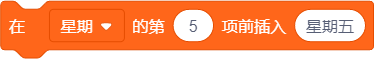 在左图中列出星期的安排,并通过右图中的程序将周五插入到列表中以实现一周七天按顺序排列