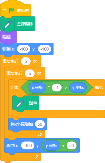 执行下面程序后在舞台中出现的图案是?( )