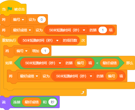 列表‘50米短跑时间(秒)’中记录的是六(2)班每位学生的测试成绩,在这些数据中每个条目对应一位学生的信息。当运行该程序时,系统将识别出具有最低记录值的学生,并输出其学号。