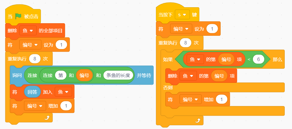 (3)建立名为“鱼”的列表,用于保存鱼的长度。