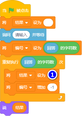该程序将接收用户输入内容的逆序操作作为处理对象。比如当用户输入‘我爱妈妈’时 角色会回应‘妈妈我爱你’ 请判断该程序中变量①的值是什么?