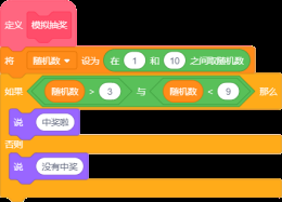 在调用并执行“模拟抽奖”后,角色说“中奖啦”的概率为50%。