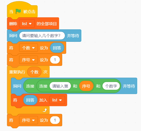 (2)输入的数字能够按顺序存入列表【list】;(2分)