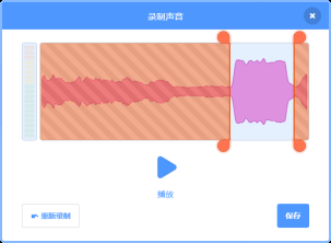 在"录制声音"对话框内,在完成录音后,请参考下图操作:通过拖动鼠标选择不需要的声音文件;然后点击"保存"按钮,并以未被选中的声音片段的形式进行保存。
