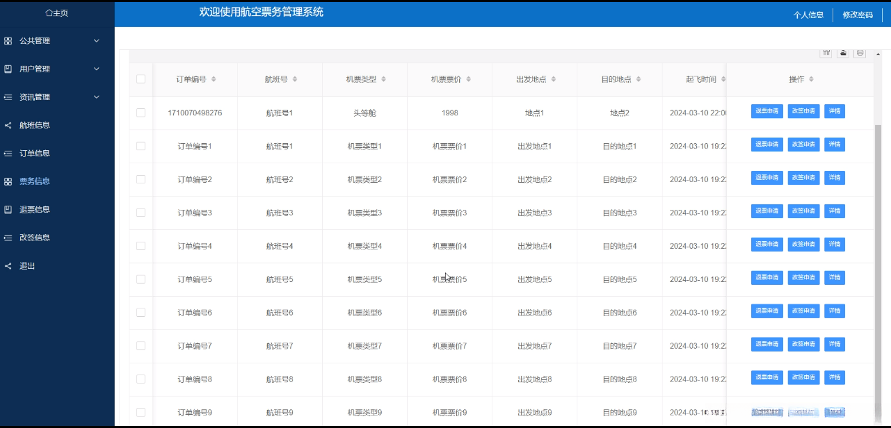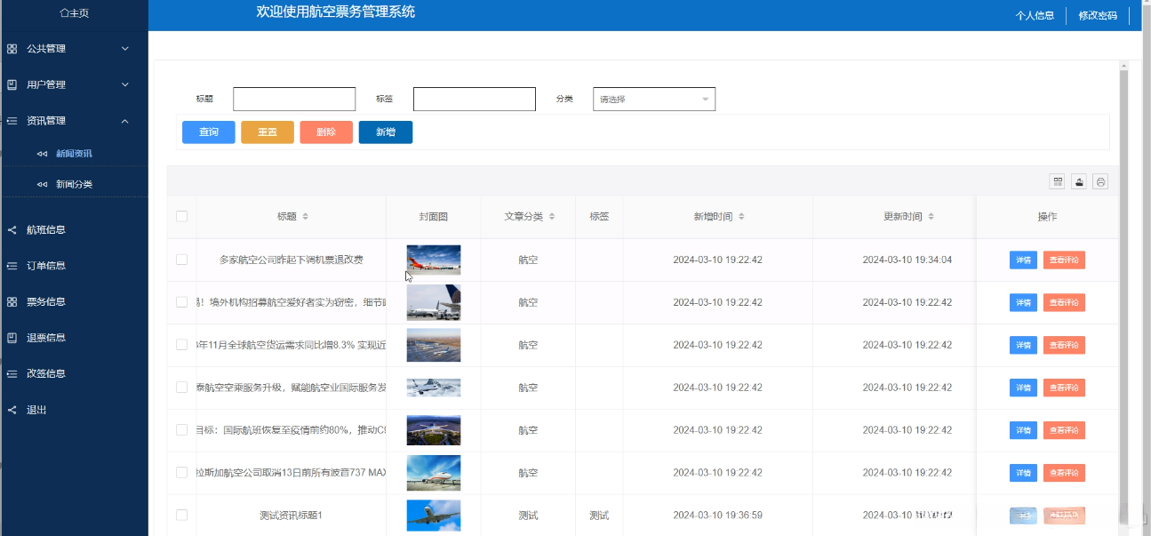 The aviation ticketing management system, as an indispensable and important component of modern aviation industry, aims to optimize ticketing management processes and improve service efficiency and quality through advanced technological means. With the rapid development of the aviation industry and the intensification of market competition, the complexity and precision requirements of ticketing management are increasingly increasing. Therefore, developing an efficient, stable, and user-friendly aviation ticketing management system is particularly important. This system integrates advanced information technology to achieve real-time updates, fast queries, and precise processing of ticketing information, providing airlines and passengers with more convenient and efficient ticketing services. At the same time, the system also pays attention to data security and privacy protection, ensuring the security and reliability of user information. The application of the aviation ticketing management system will effectively promote the informatization process of the aviation industry, improve the overall service level, and provide passengers with a better travel experience.