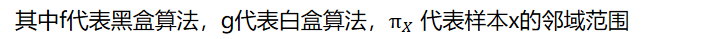 Lime应该是第一个见到的方法,它的基本思想是说:在一个样本的邻域内,使用一个白盒算法去逼近黑盒算法,使得在该邻域范围内,使用该白盒算法可以解释该黑盒算法。如果非要用数学表达式表示的话(虽然被公司教导解释任何东西的时候都不能有数学表达式),可以表示成如下的形式: