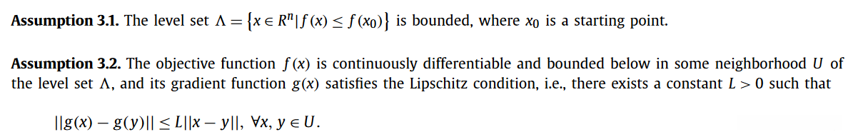 本节旨在探讨所提方法的全局收敛性质。为此,我们需要假设目标函数f(x)满足以下条件