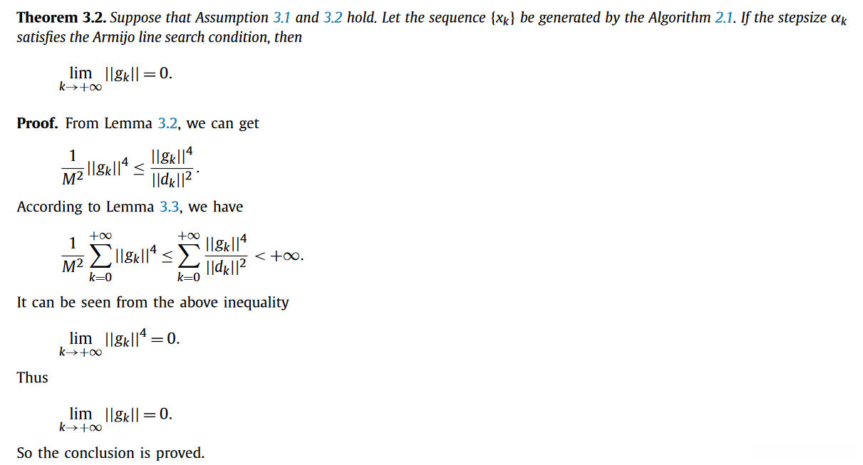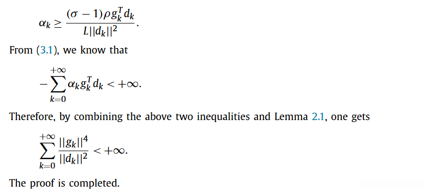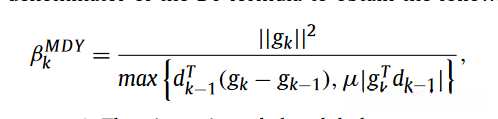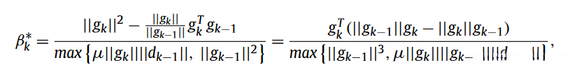 为了解决这一缺点问题,Dong [14] 对[1]中的方法进行了优化.然而,他证明了这种优化方法仅在 强Wolfe线搜索条件下 才能实现全局收敛.