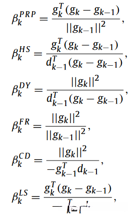 其中gk表示f在点xk处的梯度,βk称为共轭参数.