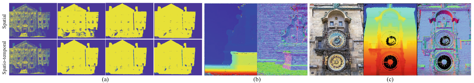 (a) Comparison of spatial smoothness term with our proposed spatial and temporal smoothness term for the occlusion variables Z . Algorithm starts from the left with the first sweep and is followed by consecutive sweeps to the right.