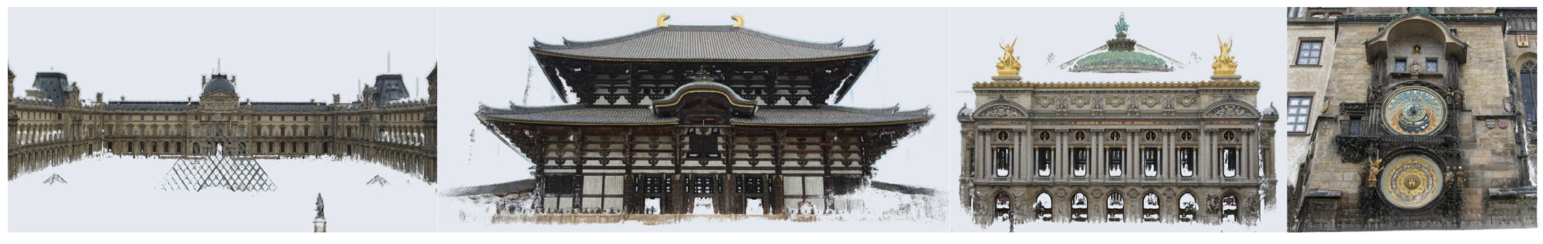 Reconstructions for Louvre , Todai-ji , Paris Opera , and Astronomical Clock.