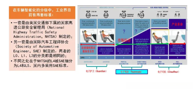 级别5 :完全自动化 ,车辆能够在所有情况下自主执行驾驶任务,无需人类干预