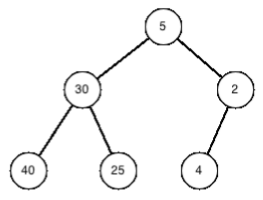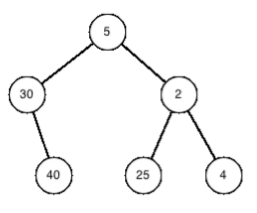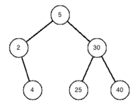 1、【单选题】如下哪个树正确地显示了按顺序插入键值5,30,2,40,25,4后的二叉搜索树?