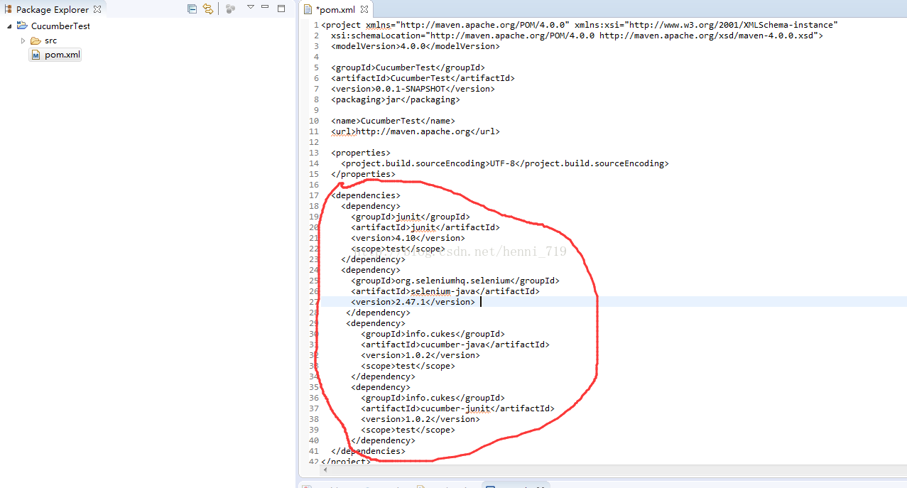 Step_3:添加selenium、JUnit、Cucumber-JUnit、Cucumber-Java依赖