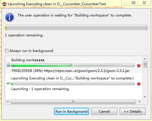 pom.xml编辑成功并保存,然后进入Project -> Clean 将花费几分钟。