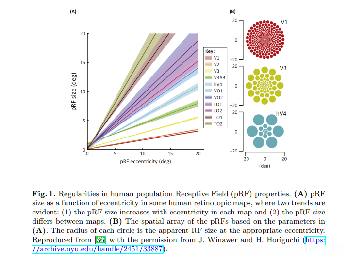 后者 为接受野尺寸和人类视觉的离心率关系