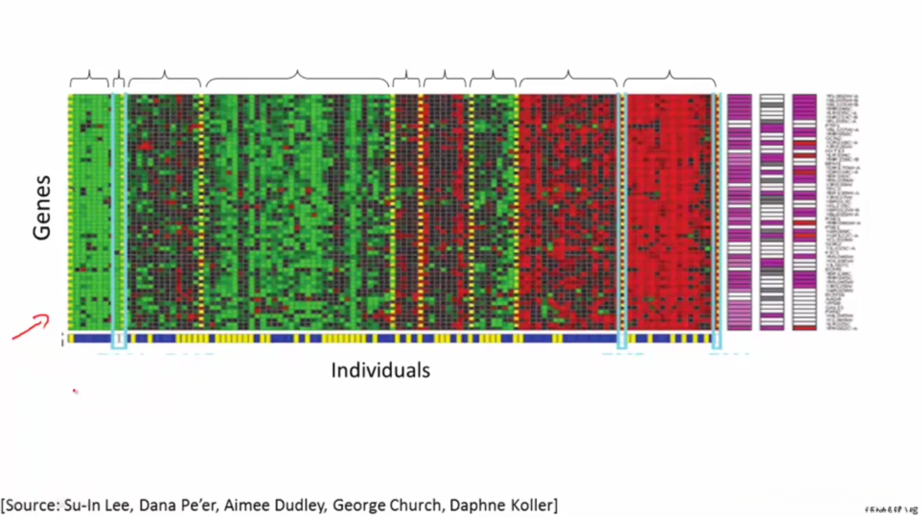如图是DNA数据,对于一组不同的人我们测量他们DNA中对于一个特定基因的表达程度。然后根据测量结果可以用聚类算法将他们分成不同的类型。这就是一种无监督学习, 因为我们只是给定了一些数据,而并不知道哪些是第一种类型的人,哪些是第二种类型的人等等。 链接:https://www.jianshu.com/p/7bae1ead174e