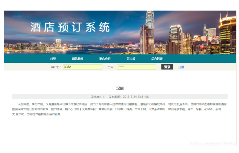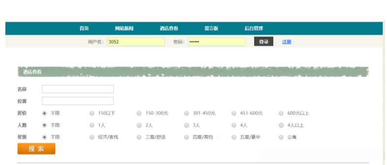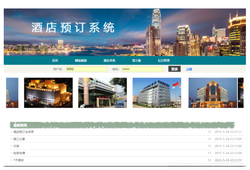 用户注册登录、网站新闻、酒店查看、留言、酒店预订、我的订单、酒店退订等。