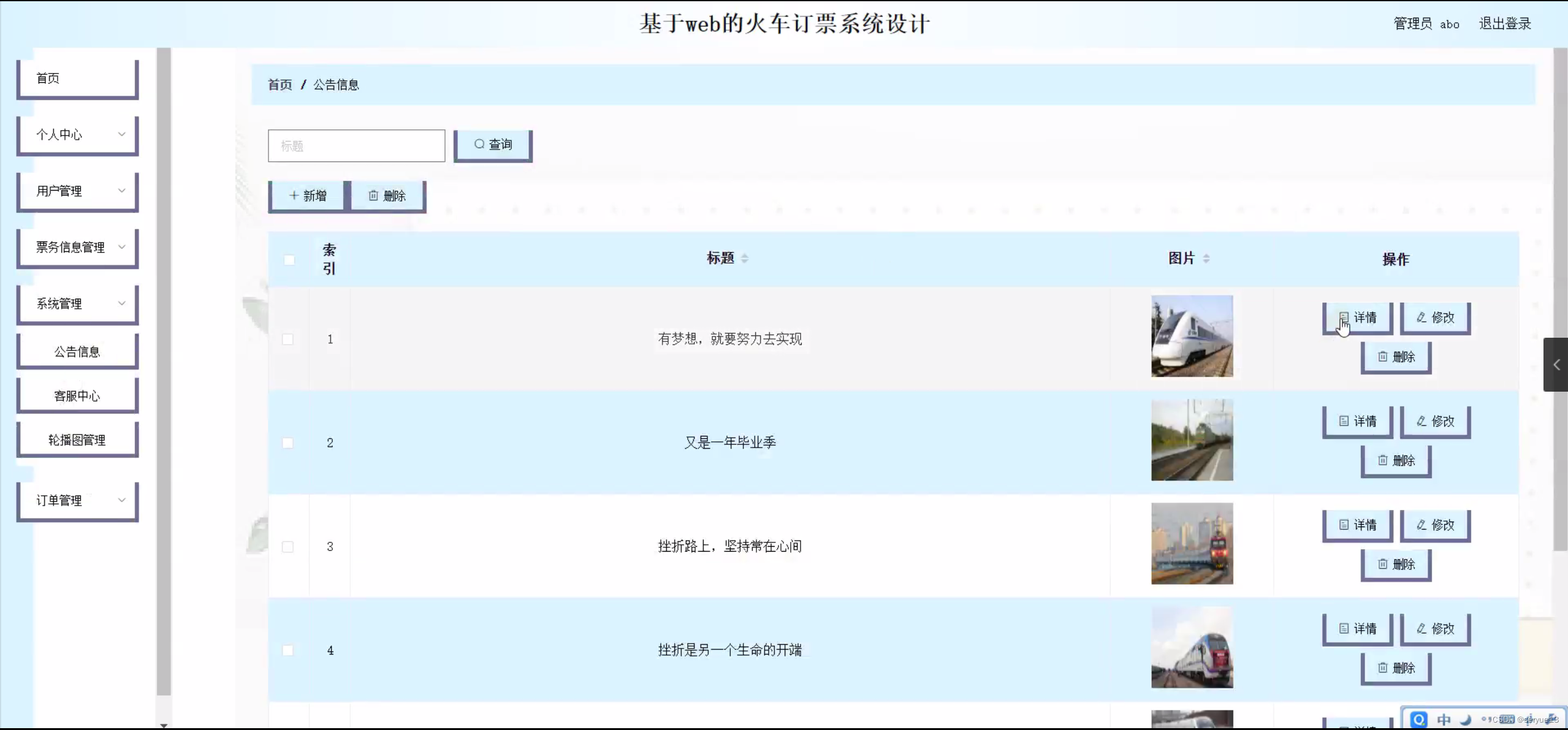 选题背景: 随着互联网的快速发展,人们的生活方式发生了巨大的变化。传统的火车订票方式已经无法满足人们的需求,因为这种方式需要亲自去火车站或者通过电话预订,非常繁琐和耗时。而基于web的火车订票系统设计可以解决这个问题,它可以通过互联网实现火车票的在线预订,方便了人们的出行。