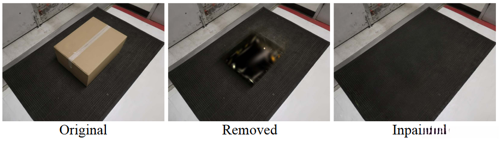 GS encounters challenges in generating hidden or occluded surfaces. By making use of LAMA, we generate Inpainted images that assist in reconstructing a complete 3D scene, rendering it more realistic.
