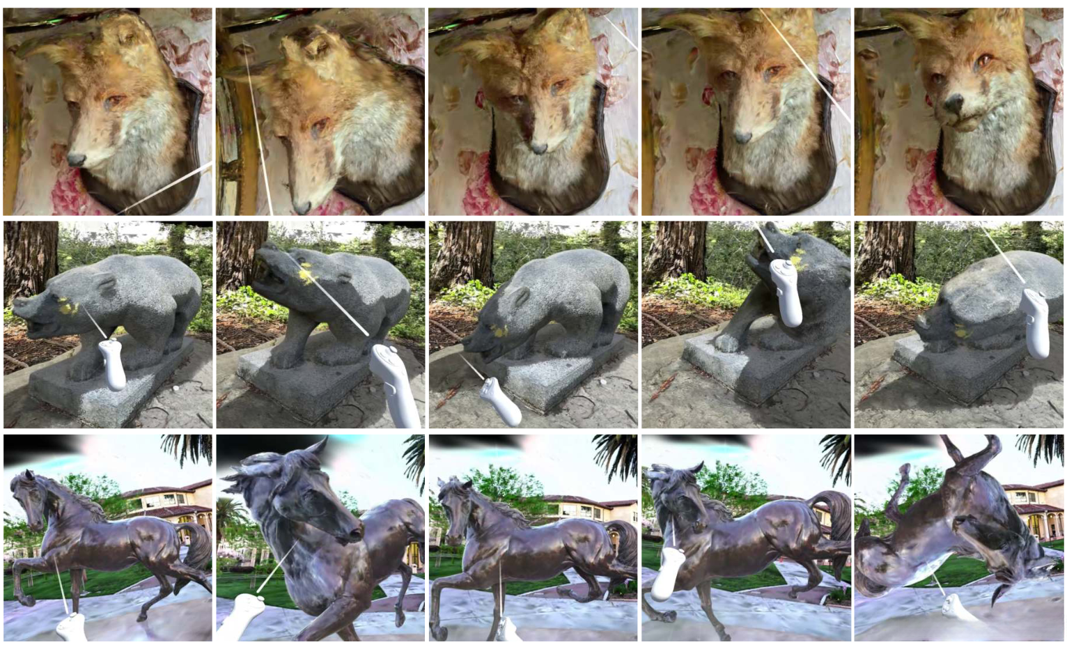 Using our system, individuals can engage in engaging and intuitive physics-driven interactive experiences with deformable virtual animals and realistic environments represented with 3DGS.