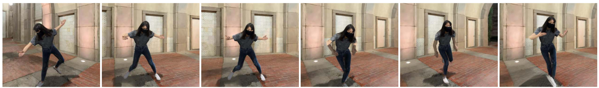 VR-GS generates high-fidelity dance given a reconstructed human body.