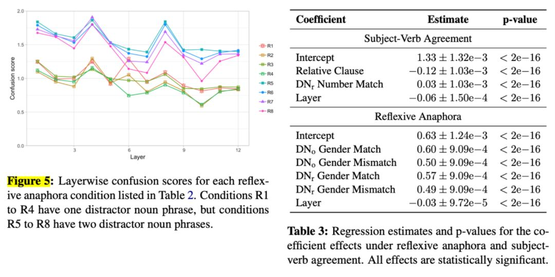 最后,值得注意的是,对于共指消解和主语动词一致的混淆在第 4 层增加,而在 N_th token 的实验中,正好也是第 4 层之后结果开始下降。作者为未来留下了一个对这两者之间联系的伏笔。